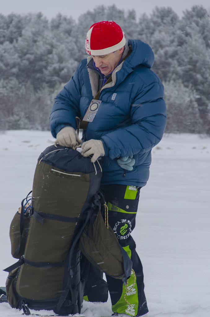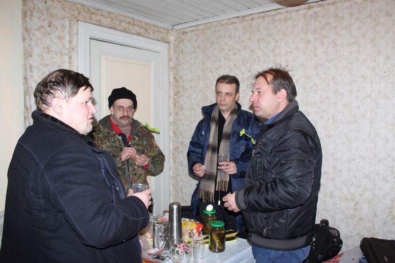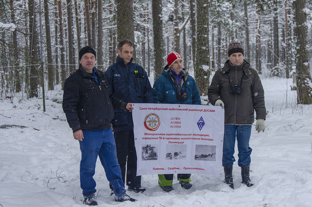 Теперь экспедиция по плану должна будет разделиться на два лагеря. Первый лагерь, возглавляемый Олегом Овчинниковым UA1CEI, будет находиться на берегу в доме. Второй лагерь, возглавляемый Игорем Никульским RA1ADB, отправляется на лёд Ладожского озера, что бы установить там антенну и палатку, и работать совместно с первым лагерем в группе. Основной станцией будет лагерь на берегу в отапливаемом доме, с оборудованным шеком и электричеством. Именно эта часть экспедиции и будет всё время работать только позывным UE70DV. Лагерь Никульского на льду будет работать только в группе с UE70DV и только своим личным позывным RA1ADB, по понятным причинам (работа от аккумулятора при отрицательной температуре). Кстати, Игорь Никульский со своим соратником по экстремальному туризму, а точнее с его наставником и давним приятелем Владимиром Павловым останутся ночевать в палатке на льду Ладожского озера в 300 метрах от берега, в честь памяти героическому подвигу города Ленинграда. Владимир Васильевич Павлов - блокадник, бывший тренер по спортивному туризму. Перед началом сборов на лёд, коллективное фото на память с информационным баннером экспедиции. Вложение: