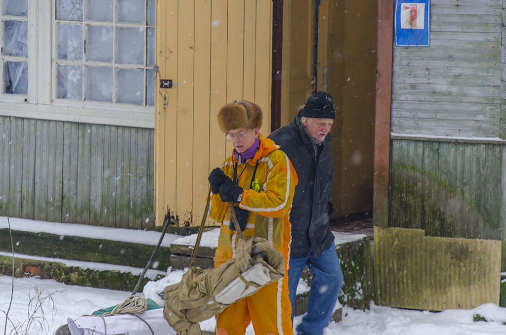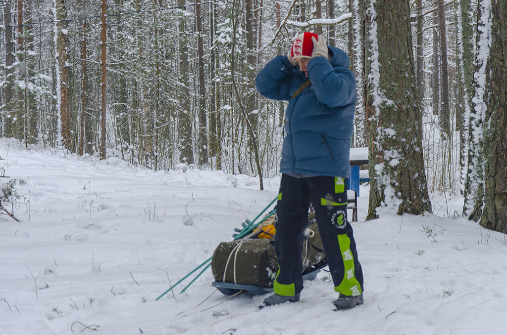 Рюкзаки периодически соскальзывали с плеч, сани переворачивались, но благодаря поддержке со стороны, наши "полярники" всё-таки достигли своей цели. Вложение:
