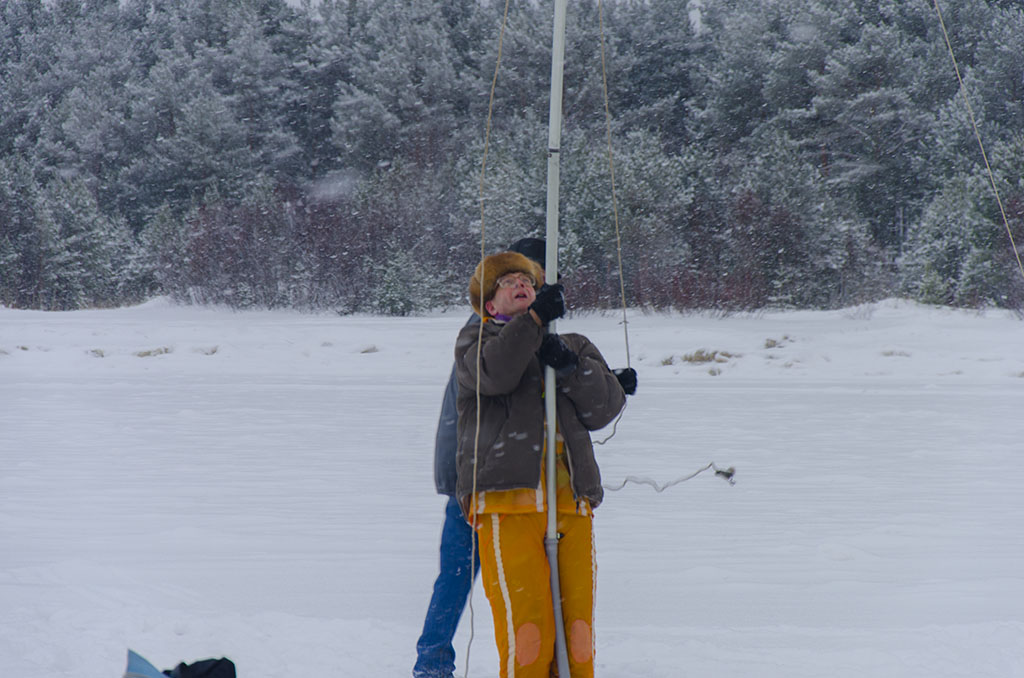 Ожидая приезда съёмочной группы телевизионщиков, за установкой наблюдает организатор экспедиции - Игорь Никульский RA1ADB. Вложение: