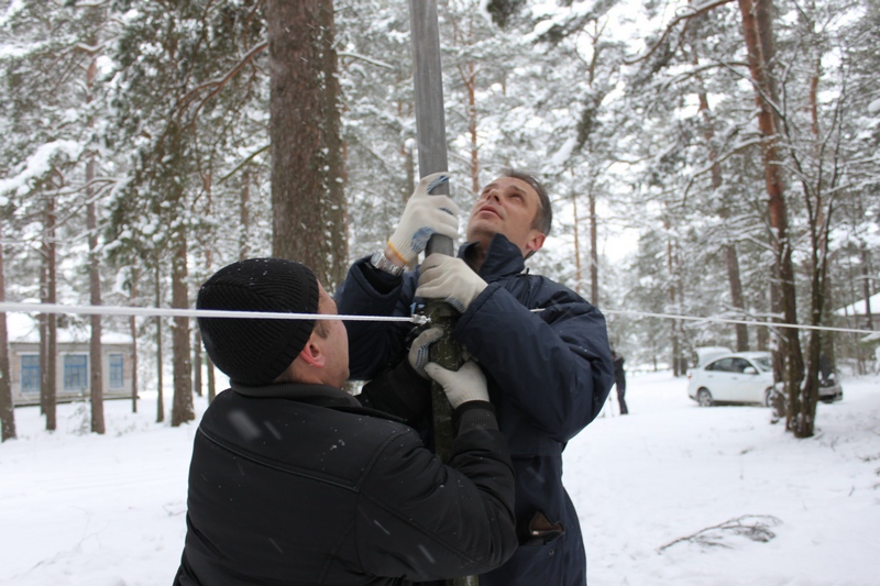 Продолжение (начало на предыдущей странице - viewtopic.php?p=94388#p94388). Все фотографии в тексте сообщения можно кликать для увеличения. Опустив мачту, исправив все неполадки, мы снова принялись за установку её на новое место. Во второй раз подъём прошел быстрее, чем в первый. Осталось зафиксировать оттяжки и растянуть полотно антенны Inverted-V на 80-метровый диапазон. Вложение: