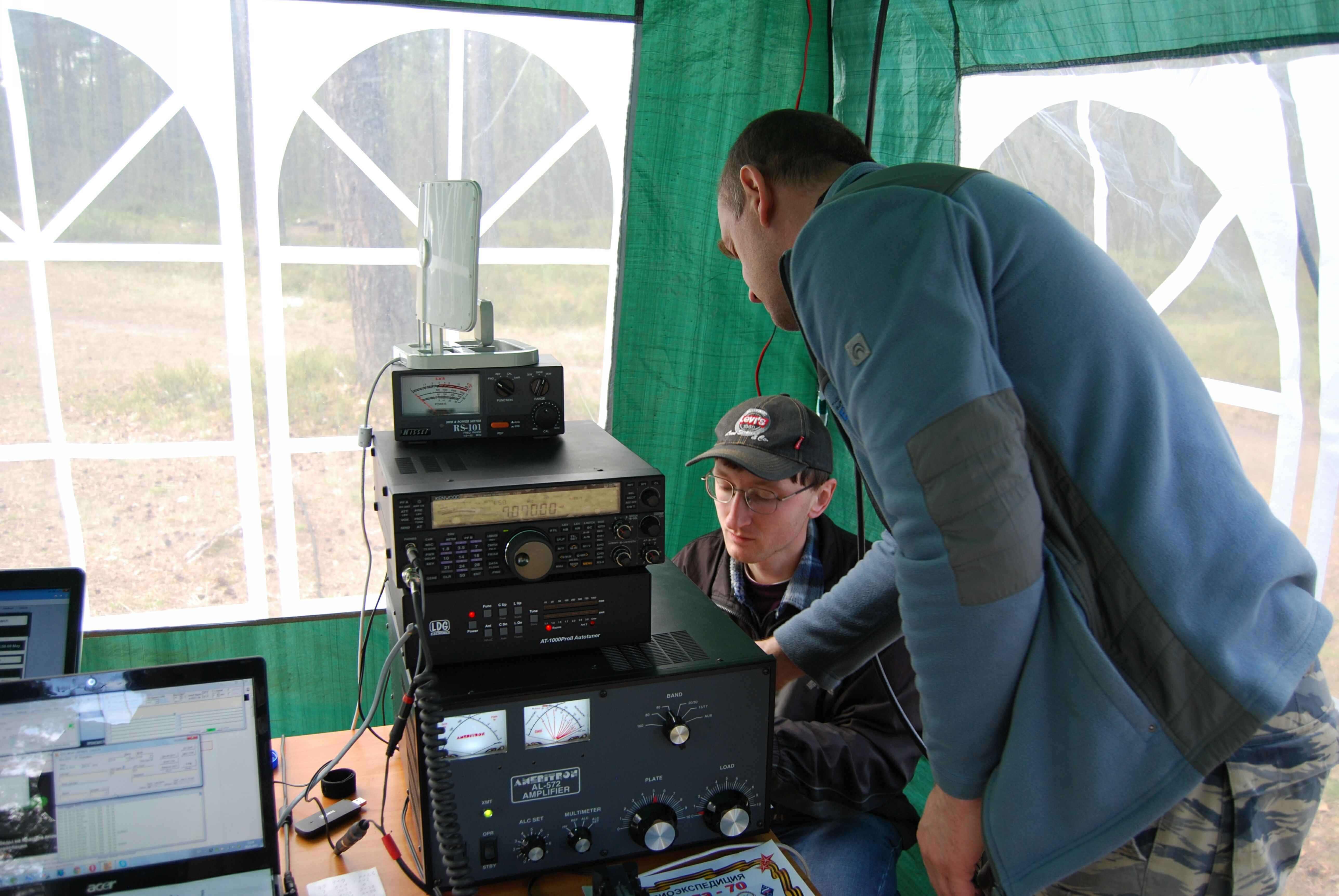 Комментарий к файлу: Работа в главной радиорубке кипит! Лагерь RP70DV. Коккорево. Берег Ладожского озера (Дорога жизни) 9 мая 2015 г.
