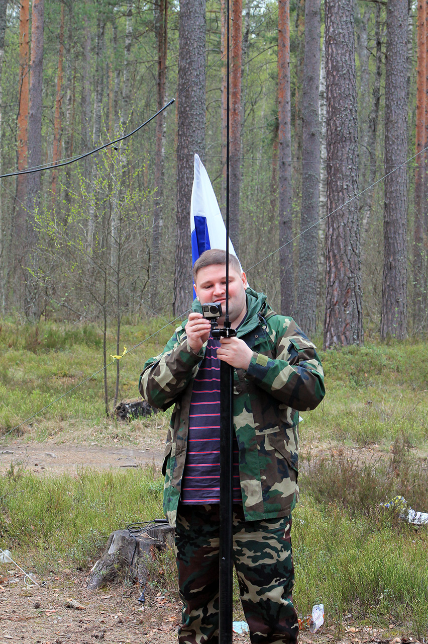 Комментарий к файлу: UA1CFX селфи доволен. Однако всем он пояснил, что это был простой съёмочный кран. Лагерь RP70DV. Коккорево. Берег Ладожского озера (Дорога жизни) 8 мая 2015 г.