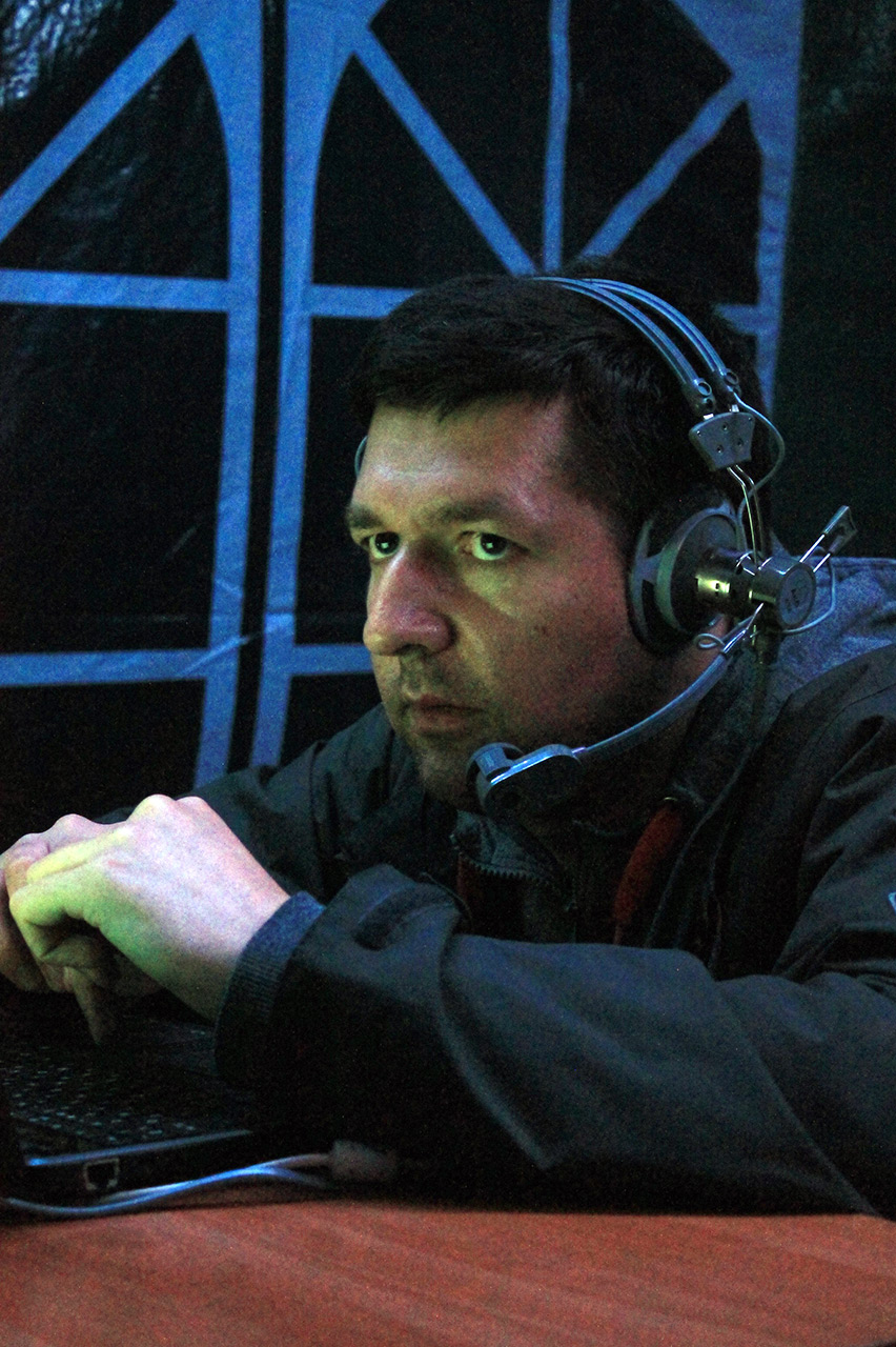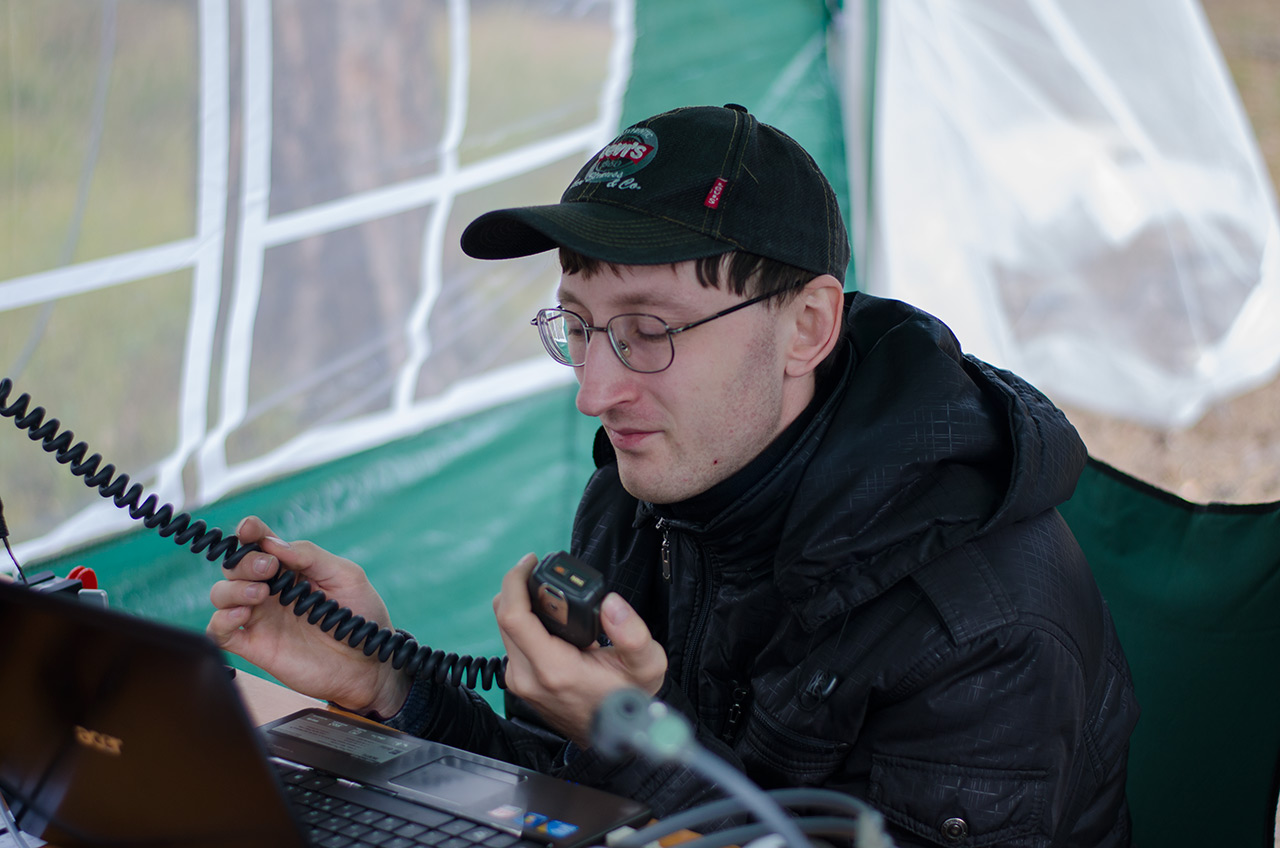 Комментарий к файлу: Никита RA1AO. Нет, он не спит и глаза у него не закрыты, он просто смотрит на клавиатуру ноутбука и внимательно слушает своего корреспондента.