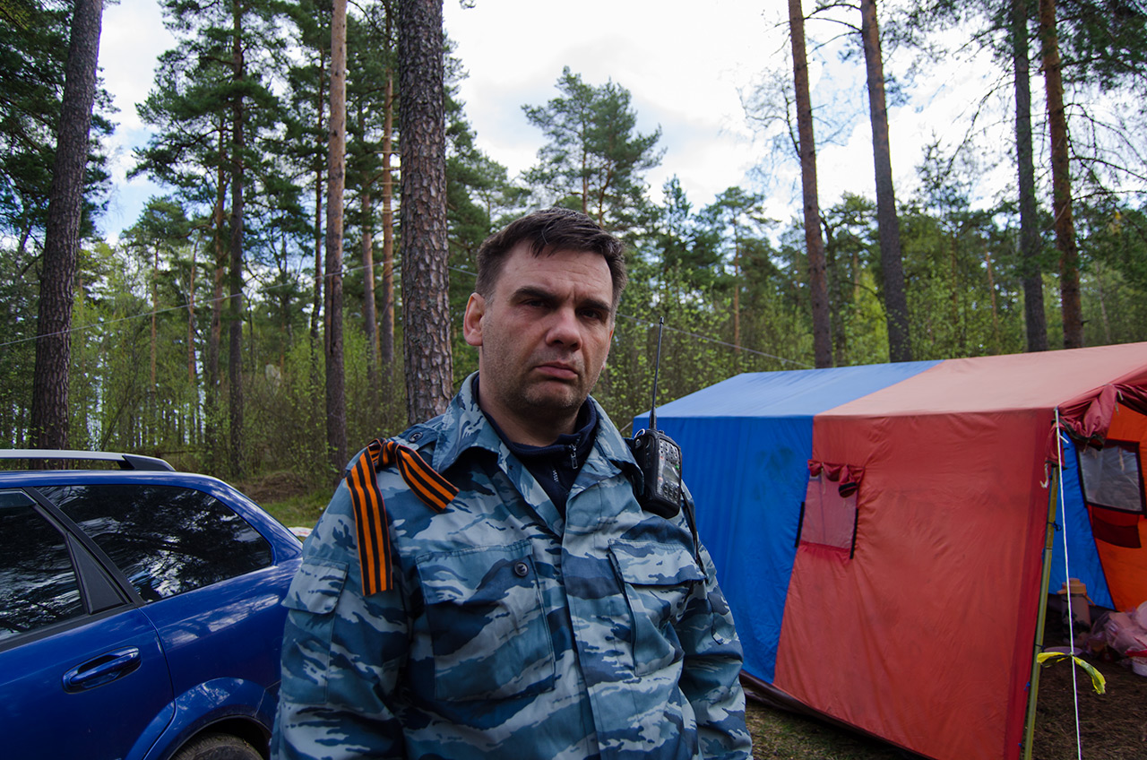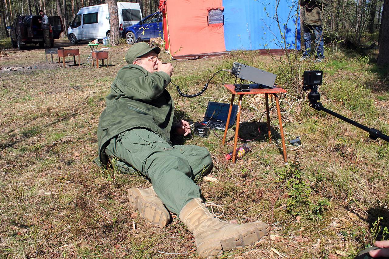 Комментарий к файлу: UA1CFX перед Вахтой Памяти. Всё тщательно документирует на свой фотоаппарат RA1AIE. Лагерь RP70DV. Коккорево. Берег Ладожского озера (Дорога жизни) 9 мая 2015 г.