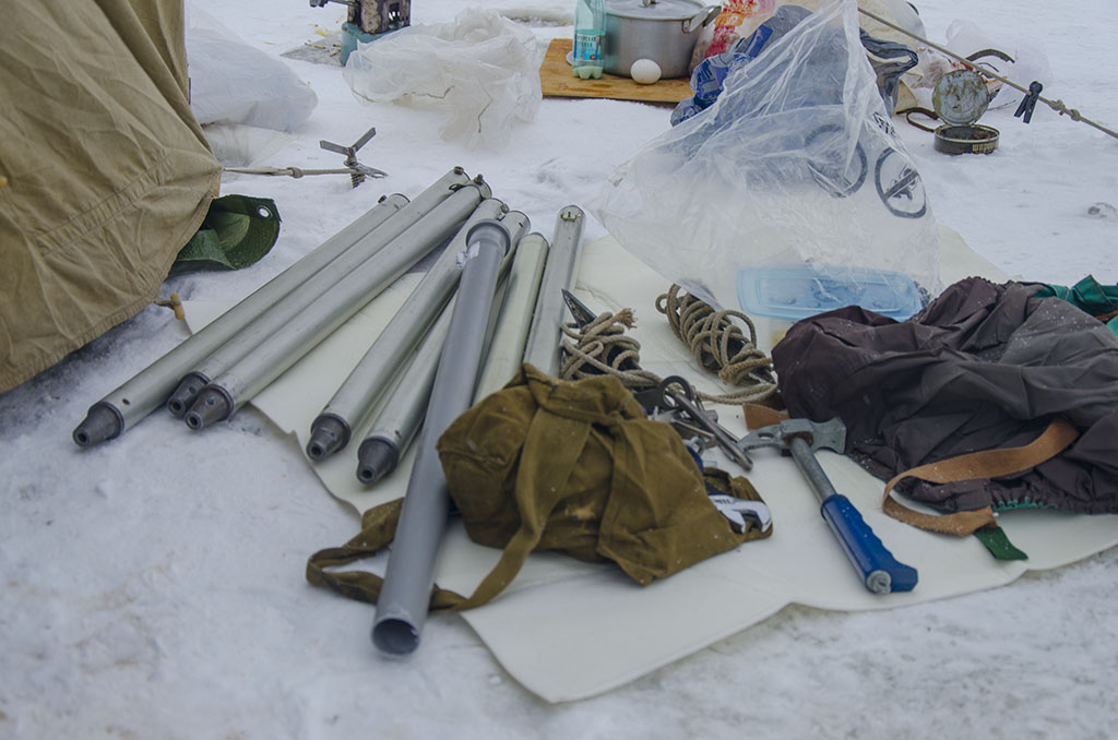 Чаепитие окончено, пора приступать к работе. Первым делом сняли антенну. Собрали весть такелаж и упаковали. Ну а далее собирали вещи в палатке и упаковывали в рюкзаки и т.д.