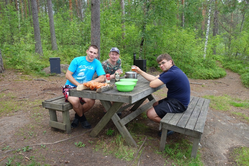 В лесу обнаружили девственные места со множеством лисичек. Таким образом, рыбалкой и грибной охотой удалось обеспечить себе неплохое пропитание, а также удалось сделать немалые запасы вяленой рыбы, чтобы, длинными зимними вечерами за кружкой пива, пощипывая рыбку, вспоминать нашу поездку.