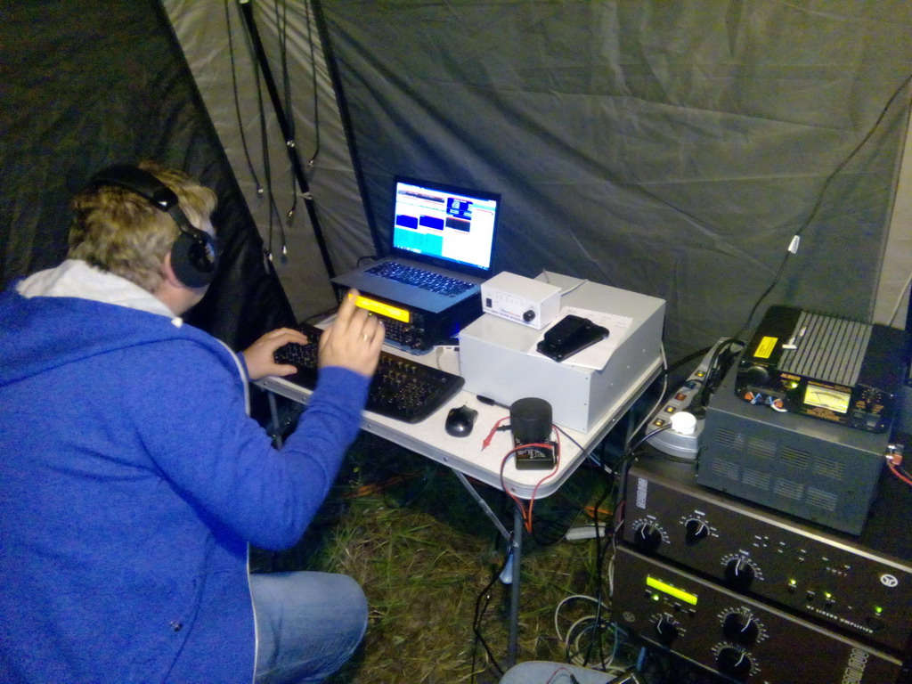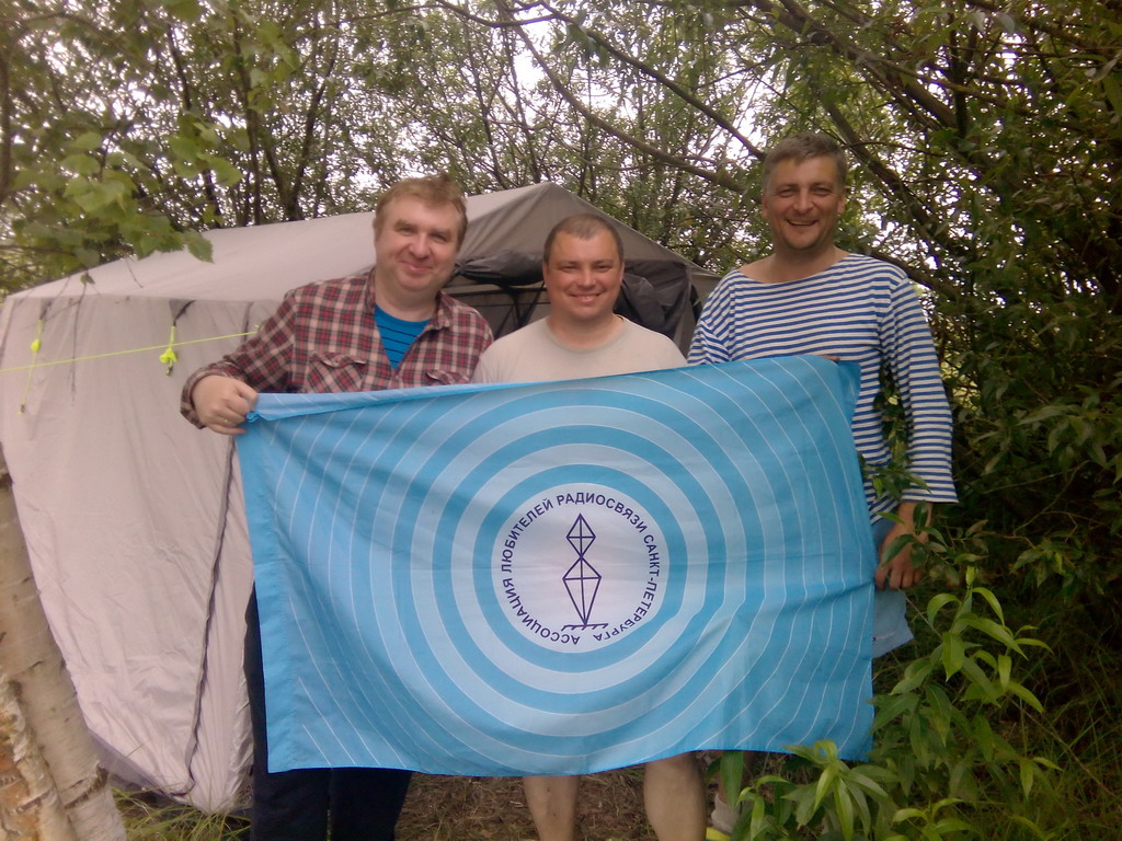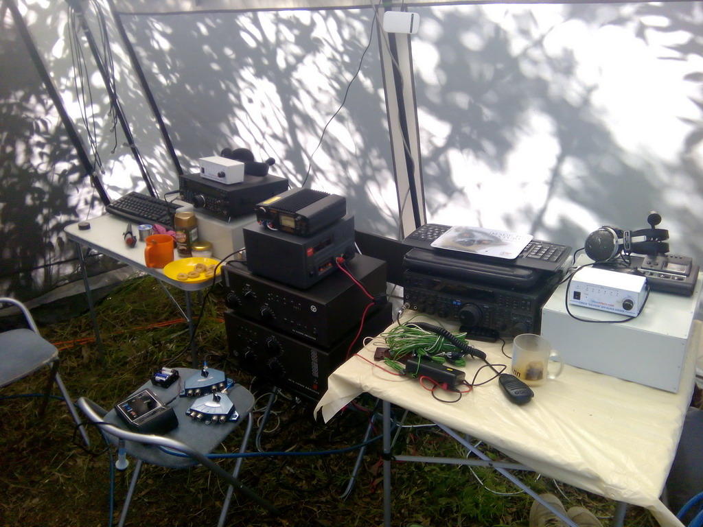Палатку пришлось ставить в кустах ))) День завершился тем, что мы расставили и скоммутировали всё оборудование. Наутро приехал RK1AD и RW1A и мы начали установку антенн. Вложение: