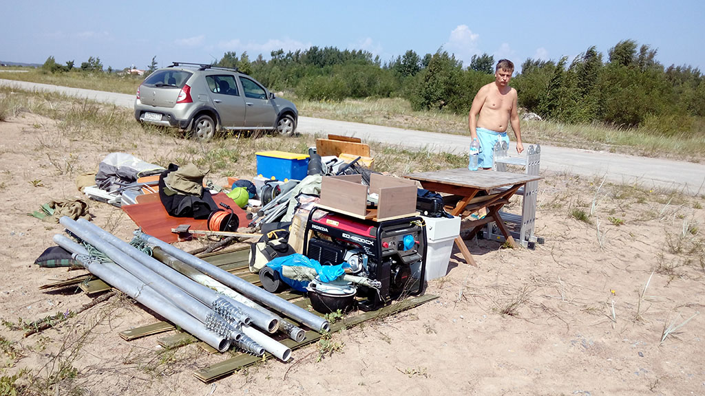 Замучились всё это разгружать и складировать. Было даже принято решение выделить большую палатку RW1CW под хранение оборудования, которое не должно мокнуть. Вложение: