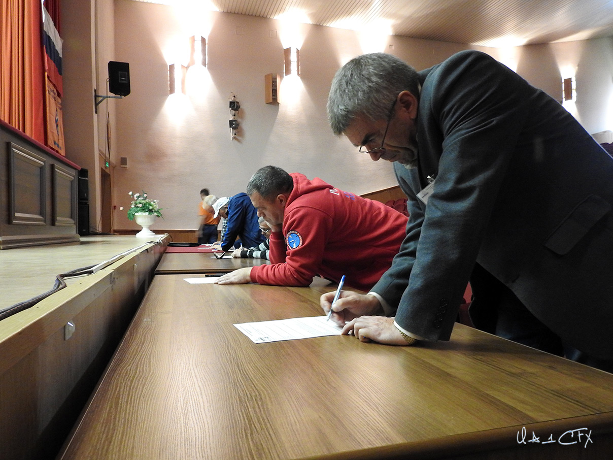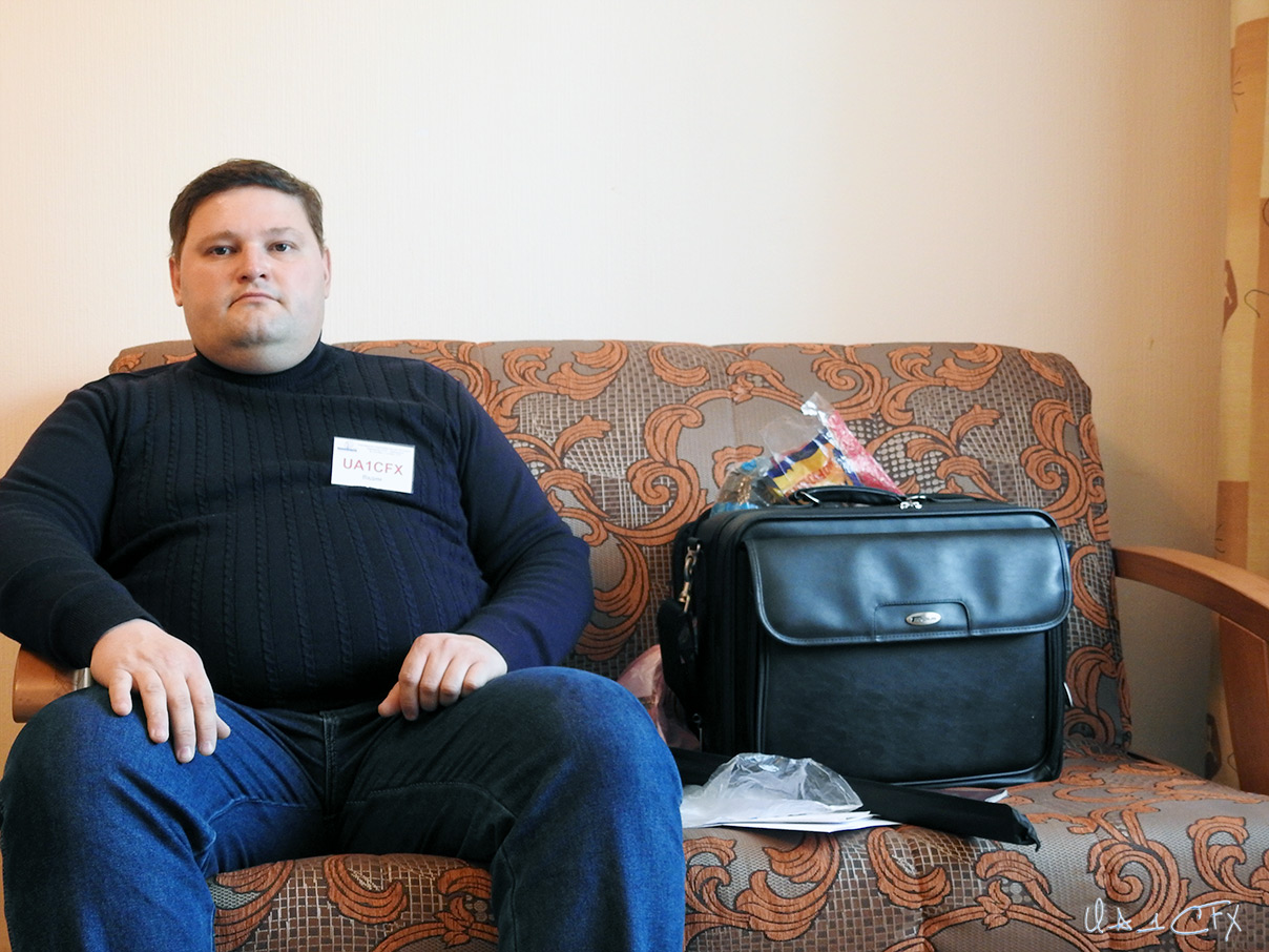 И так, отчёт о фестивале. Началось, для меня лично, всё с того, что мне внезапно позвонил Юрий Заруба (UA9OBA), который является одним из организаторов данного фестиваля, и очень сильно просил меня приехать на фестиваль, как автора фильмов об экспедициях Михаила Липина (RA1ALA). После недолгих переговоров и согласований мы с Михаилом приобрели билеты на поезд, зарегистрировались на сайте фестиваля и оплатили проживание, и питание. И вот, 30 сентября в 22 часа мы отправились в Москву. Проехав 7 часов, мы прибыли на Ленинградский вокзал в 5 утра. Нам повезло, что метро должно было открыться с минуты на минуту. В метро мы приехали на заранее оговоренную станцию, где нас подхватили коллеги из Москвы и мы на машине отправились на место. Надо сказать, что приехали мы очень рано. Все ещё спали, а на рецепшене не было сотрудника, который бы смог нам выдать ключи от номера и пропуск с талонами на питание. Через некоторое время появился Евгений R2AA, который является одним из организаторов фестиваля, и сказал нам, что придётся подождать до 9 часов утра, когда придёт дама, которая сможет нас поселить и выдать всё необходимое. Получив на руки папки участников с бэйджиками, вымпелами и рекламными брошюрами, мы настроились на долгое ожидание в холле административного корпуса. К счастью, таких прибывших, как мы с Михаилом, было ещё несколько человек, что сглаживало мысли о томительном ожидании. Вложение: