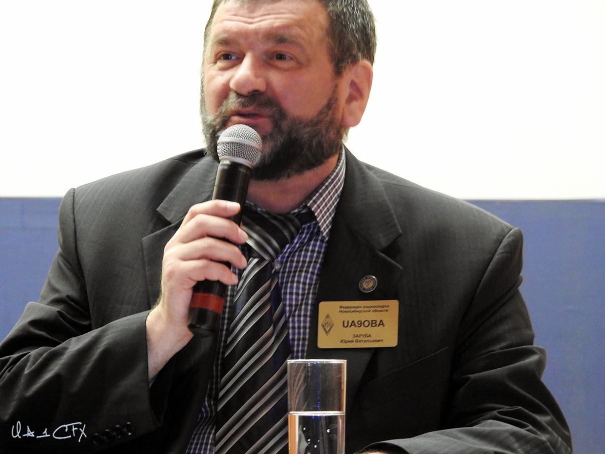 Юрий Заруба (UA9OBA) представил членов президиума (R2AA, RA5DU, UA9OBA) и по традиции дал слово президенту СРР Дмитрию Воронину (RA5DU). Вложение: