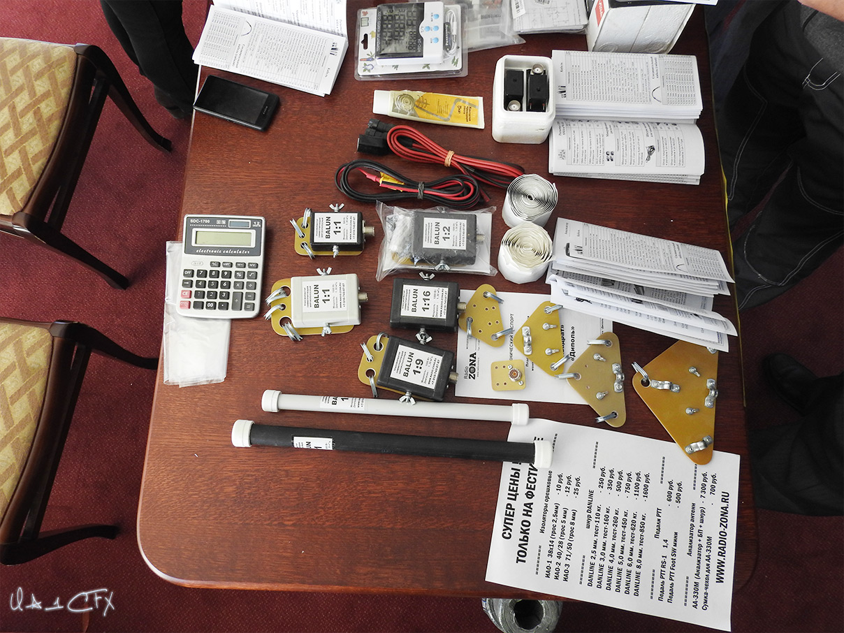 Я тоже не стал дожидаться, когда торговля свернётся или товар закончится, ибо у некоторых лотков стояли натуральные очереди. Одним их таких был лоток интернет магазина Евгения Медведева (R3WC) http://www.radio-zona.ru на котором продавалось много разных полезных для радиолюбителя товаров, по специальным для Фестиваля ценам. К нему-то я и поспешил, дабы купить себе то, что мне сейчас крайне необходимо для восстановления моей КВ антенны, а так же всяко-разно для будущих выездов в поля. Вложение: