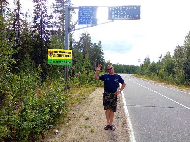 Фотографируемся на фоне знака «Территория города Костомукши». Надпись звучит очень грозно. Проезжаем несколько километров вперед для поиска удачного места, а город всё не начинается  Вложение: