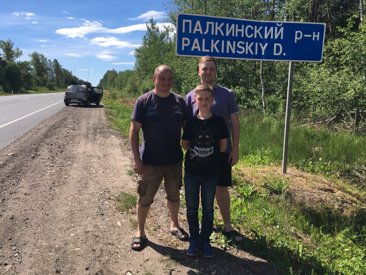 Находимся в Струго-Красненском районе. Не было возможности сфотографироваться на фоне стеллы из-за ремонта дороги с правой стороны.