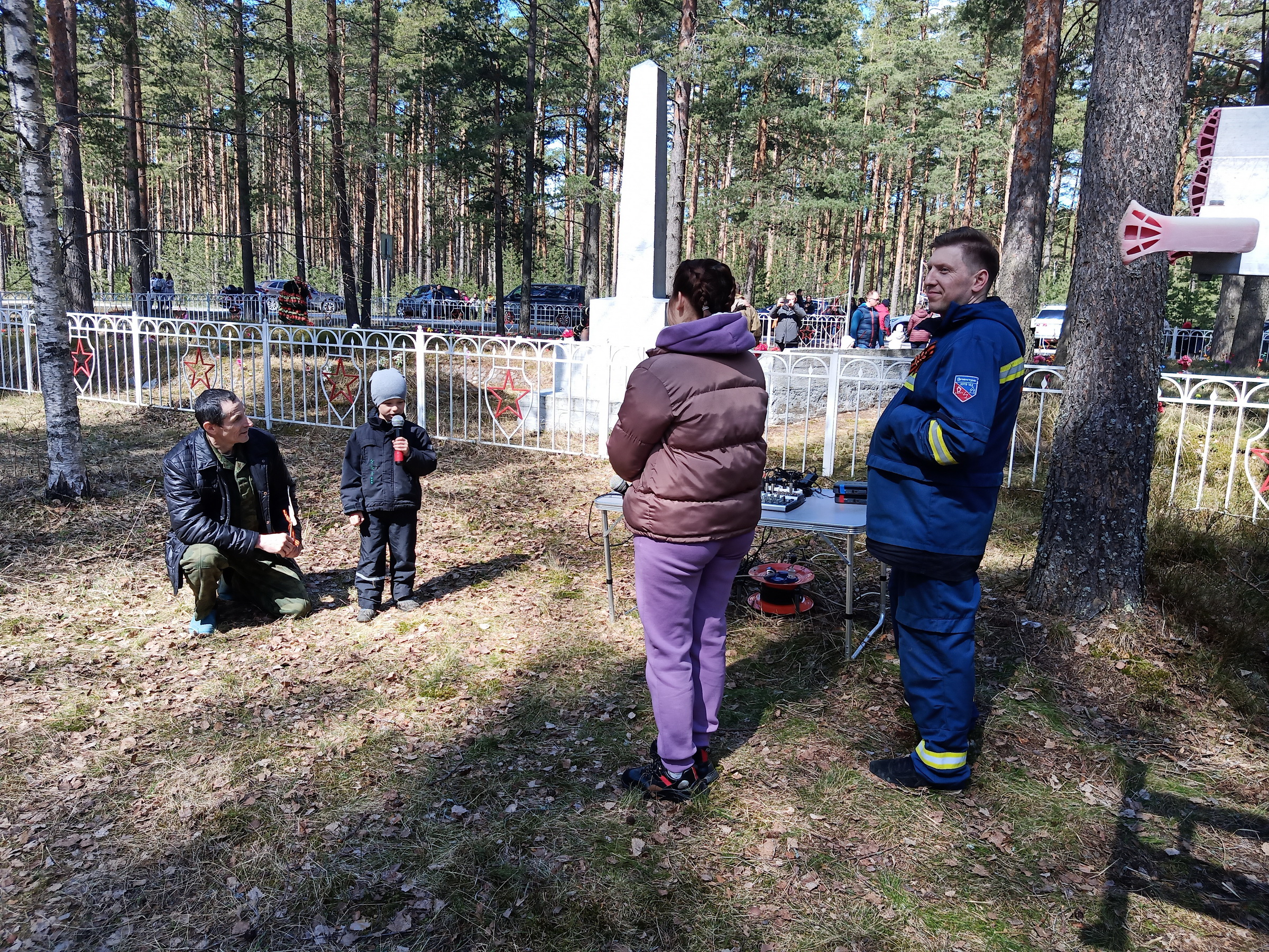 8 мая собрались у Дома Культуры- UA1F- Василий, RA1ALH- Андрей, RO1M- Евгений, R1BHL- Владимир и Иван из нашего центра (сдал на 2 категорию- позывной в пути). Дождь льет! Пообщались с руководством, погрузили генератор и решили ехать к Мемориалу.