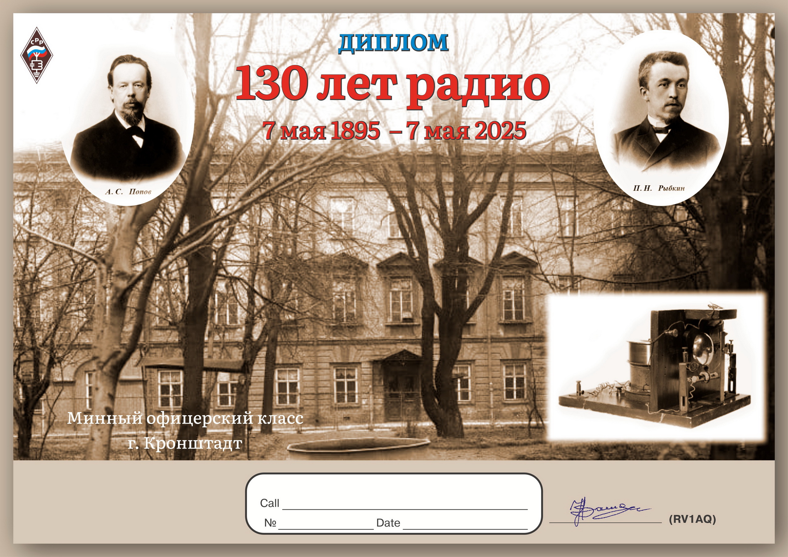 В период дней активности при выполнении условий будет выдаваться радиолюбительский диплом “130 лет Радио” в электронной форме.