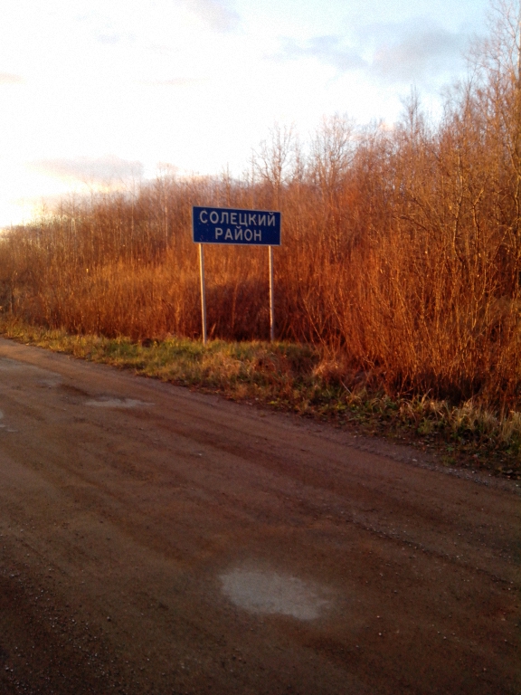 Табличка на границе Солецкого и Шимского районов, почему-то табличка только одна и та пришла в упадок, дорога соответствует.
