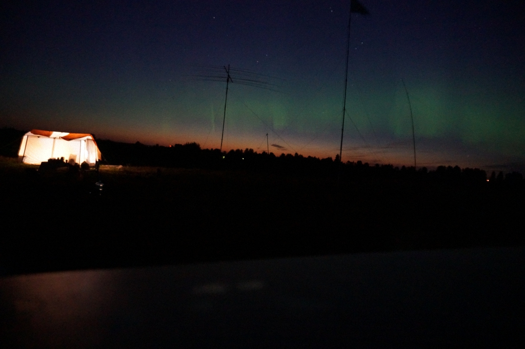 Выехали тут большой командой в LO-33 и работали позывным RD1A/P. Отработали в тесте неплохо, не обошлось без косяков, но все исправляли по ходу дела =) Вечером в субботу наблюдали аврору, которая резко ухудшила прохождение, некоторые диапазоны закрывались так, будто антенна отвалилась. А потом также резко возобновлялось прохождение. Аврора на фоне AD-335 и шека: Вложение:
