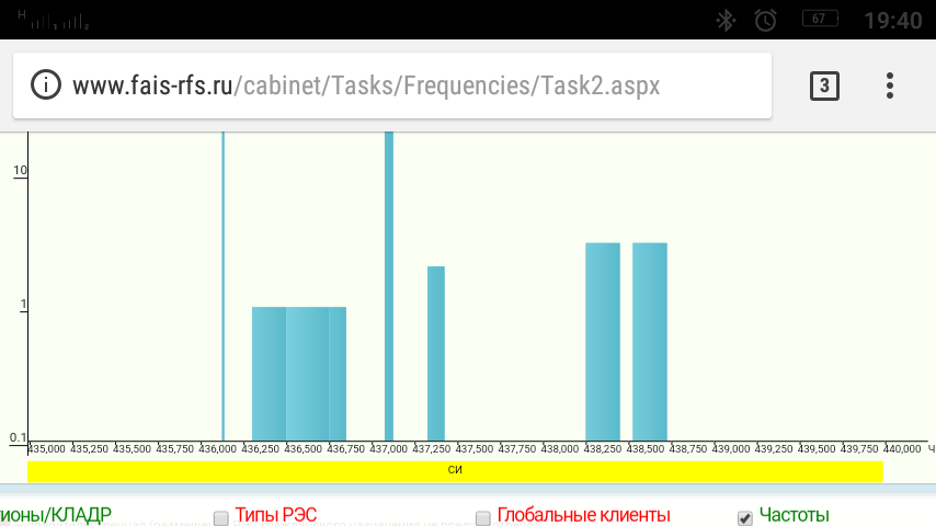 Свежие данные по легальным действующим РЭС 435-440 МГц (сухопутная подвижная кроме транкинга) для Санкт-Петербурга и Ленинградской области на 7 июня 2017. 430-433 - нет действующих РЭС. 435-436 - нет действующих РЭС. 436-437 - могут быть заняты 436.125; 436.1375; 436.300; 436.350; 436.400; 436.425; 436.500; 436.550; 436.650; 436.700; 436.750; 436.800; 436.850; 437-438 - могут быть заняты 437.075; 437.325; 437.475 438-439 - могут быть заняты 438.175; 438.225, 438.250; 438.325; 438.450; 438.650; 438.725, 438.825; 438.875; 438.975. 439-440 - могут быть заняты 439.150; 439.225; 439.275; 439.325; 439.375; 439.825; 439.875; 439.975. Указанные частоты - совместное использование (СИ). По данным http://www.fais-rfs.ru/cabinet/Tasks/Fr ... Task2.aspxВложение: