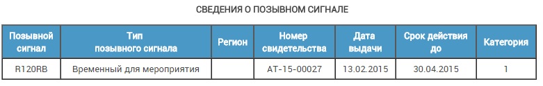 120 лет радио - 7 мая 2015 года. Срок действия позывных - до 30 апреля 2015 г.