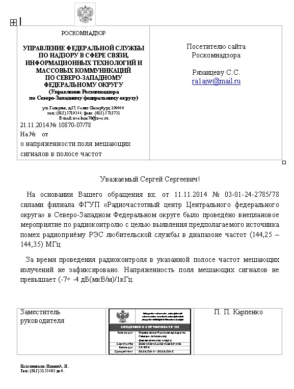 Ну вот! Ёлы - палы. Всё. Чистота. Даже письмо прислали. Просто по электронке. Без всяких бумажных волокит. Кому интересно, могу выслать PDF файл. Они мне там прямо так и написали....дескать - пользуйтесь Вашей радиолюбительской частотой.