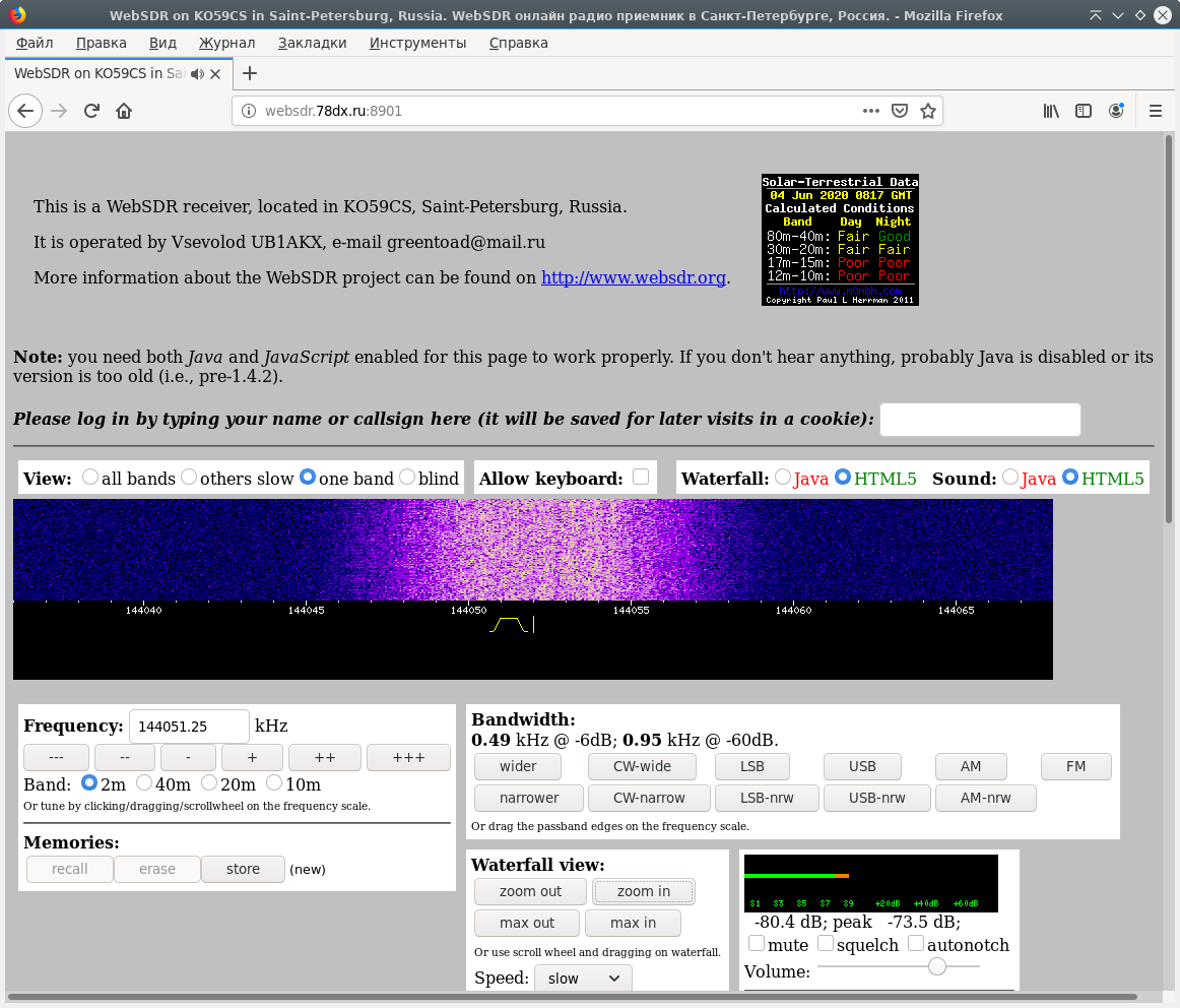 На WebSDR см. снимок ниже - белый шум. Включается временами (чаще нет, чем есть).