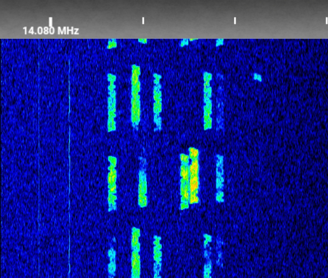 FT4/FT8: как видно из названия протокола, это 4- или 8-тональная частотная манипуляция с непрерывной фазой. Подход к повышению помехоустойчивости принципиально отличается от JT65 и представляет собой избыточное кодирование. Это CRC и LDPC коды. Длительность символа для FT4=0,048 с, для FT8=0,160 с, что больше будет подвержено быстрым замираниям, но LDPC коды могут исправлять ошибки до некоторого уровня.