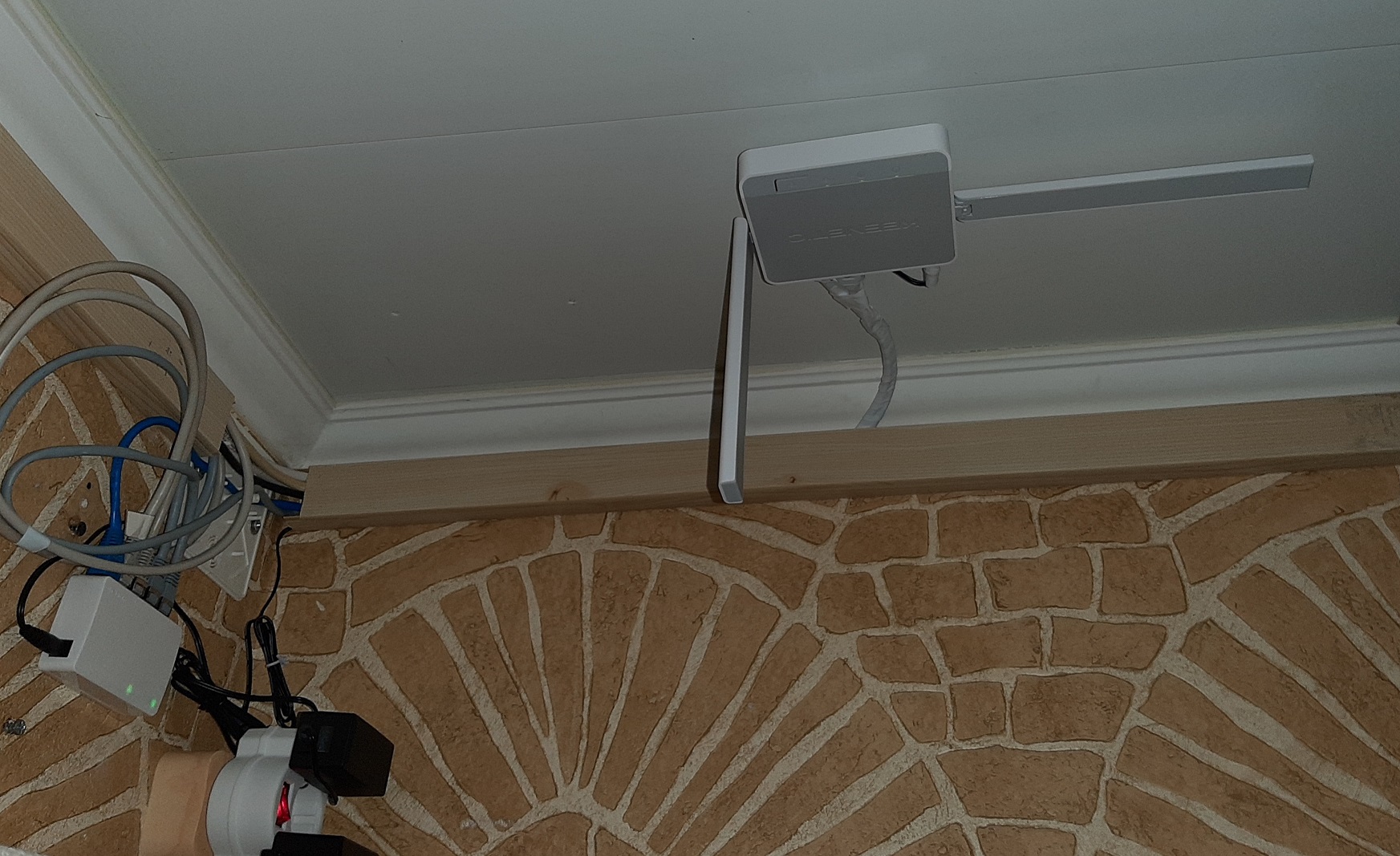 >>> ".. заметно улучшило ситацию с устойчивостью соединения, но не решило её полностью." Проводные клиенты съели весь трафик  Если не так, то есть варианты - 1. от потолка правую антенну убрать на 45 гр. вниз, и левую в сторону на 45 гр. При каждом изменении проводить замеры скорости wifi. 2. и потом левую назад на 45, правую - вперёд на 45. .. замерить. Вообще, всегда стараюсь радиоканальное оборудование размещать подальше от сетевого. Удачи!