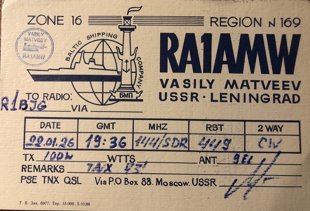 Заголовок сообщения: Форумная QSL Василию RA1AMW Добавлено: Пт 23 янв 2026 00:22 |