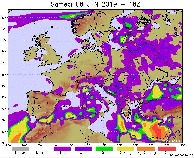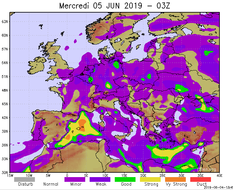 нужно ждать когда зайдёт солнце при ясной погоде.Появятся неоднородности в слоях если вдруг днём набегут облака, которые могут ускорить тропо. Сейчас ждём цвета Minor, Weak, местами
