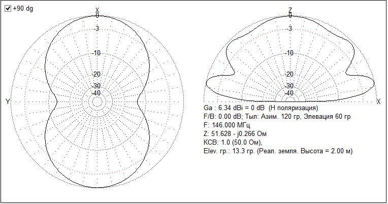 Скрин ДН с одного элемента антенны. 2 перпендикуляра дают почти круглую ДН.