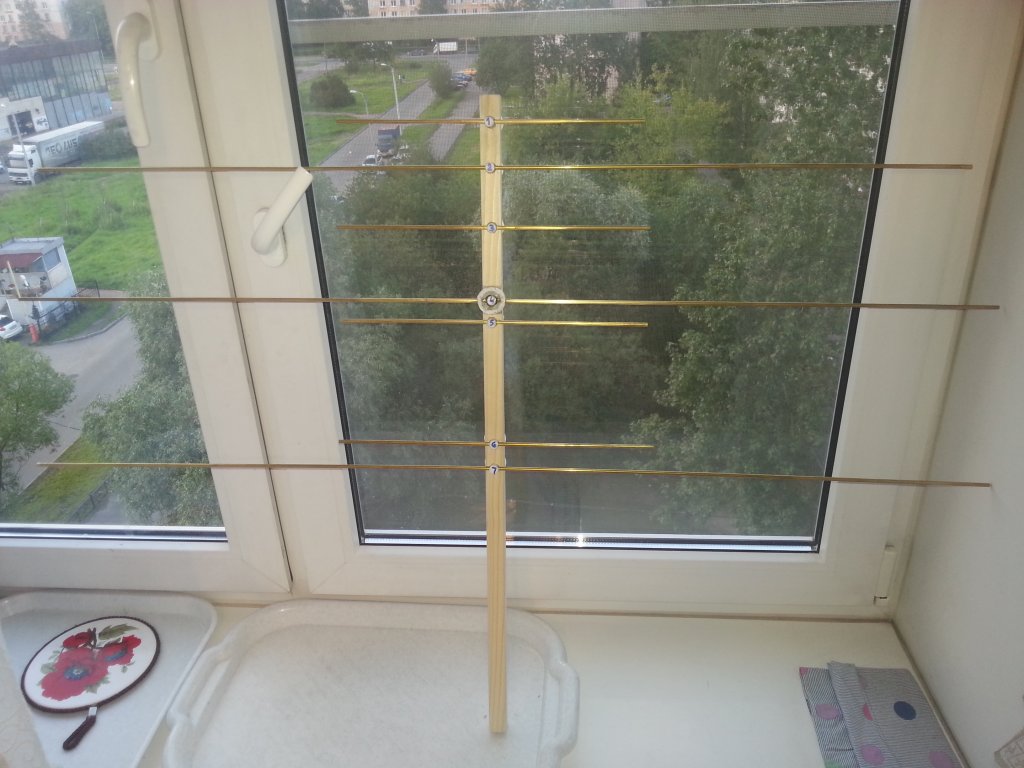feding писал(а): UB1AJU, значит в конструкцию крепления директоров будет внесено изменение? Каждый из директоров будет крепиться с помощью такого кольца (куска трубы забитой в пробку)? Практически готовая антенна. Подключить кабель, закрепить его на кругляшке с вибратором - чтобы не оторвался (два миллиметровых отверстия, два витка капроновой нитки и пропитка лаком ХВС) - и все. Ну еще липучки для съема кабеля. Антенна получилась практически невесомая.