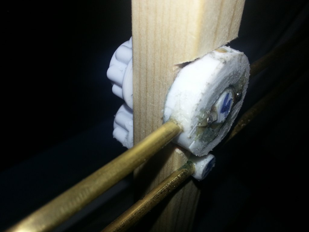 Я решил делать конструкцию более близкую к R1AIT. У меня будет траверса с накладкой поверх элементов. Скреплю саморезами траверсу и накладку. Размечу. В щели между траверсой и накладкой сделаю отверстия чуть меньшего диаметра чем толщина элементов. Поставлю элементы антенны на место и рядом с каждым элементом через накладку затяну саморезами. В месте крепления вибратора сделаю пропил и посажу туда кусок рейки ( так рубят "в лапу", кажется так называется). На этом куске рейки закреплю вибратор. Вот вроде и всё))).
