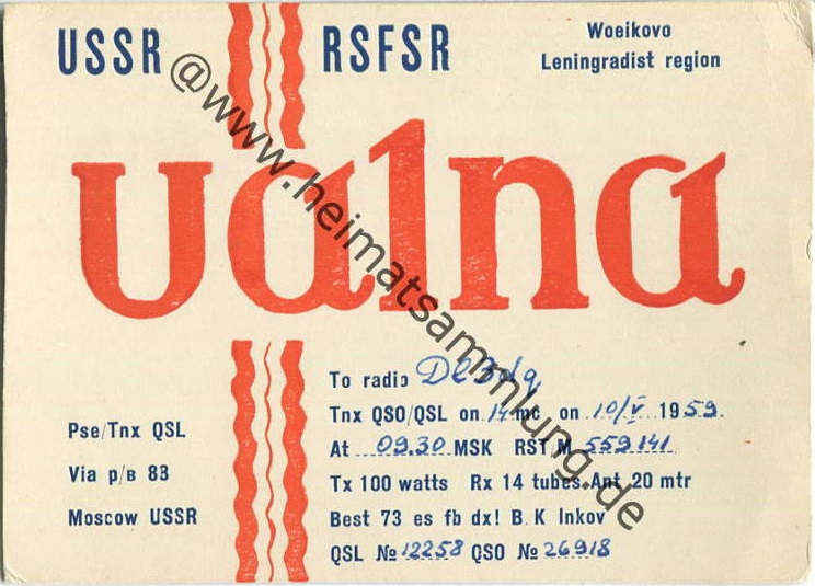 Памяти Бориса Константиновича Инькова UA1NA ...
