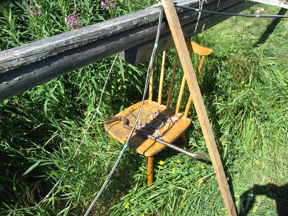 Место для УКВ просто классное, гора 250 метров на ней дом, в доме электричество и гостеприимные хозяева: Эдуард Васильевич с дочкой Ольгой. Когда-то давно Эдик покупал этот дом исходя из его местоположения для УКВ. Много всяких экспериментов проводил с антеннами и УКВ аппаратурой. В этом году это был его первый приезд туда. Рядом с домом стоит деревянная конструкция высотой метров 12 с четырьмя вертикальными рамками, а-ля "антенна Харченко", две рамки периметром 2 длины волны на 144 мгц и две рамки периметром 1,5 длины волны. Антенна не крутится, но за счет широкого лепестка в горизонтальной плоскости и двунаправленности, слышно всех и спереди, т.е 3 район и сзади т.е. Питер. Но рейки на антенне сломались и пришлось её опускать чинить подручными средствами и снова подымать. Но мы втроем справились. Кроме этой экзотической конструкции были еще две антенны, что я привез с собой. Это всем известный шестиэлементник на 144 и 25 эл. на 1296, собственного изготовления, по расчетам Александра RU1AA. Поскольку выезд состоялся в меньшем составе, чем планировалось изначально, а решение о том, что я все же поеду было принято за два дня до отъезда, то других антенн быстро найти не представлялось возможным.