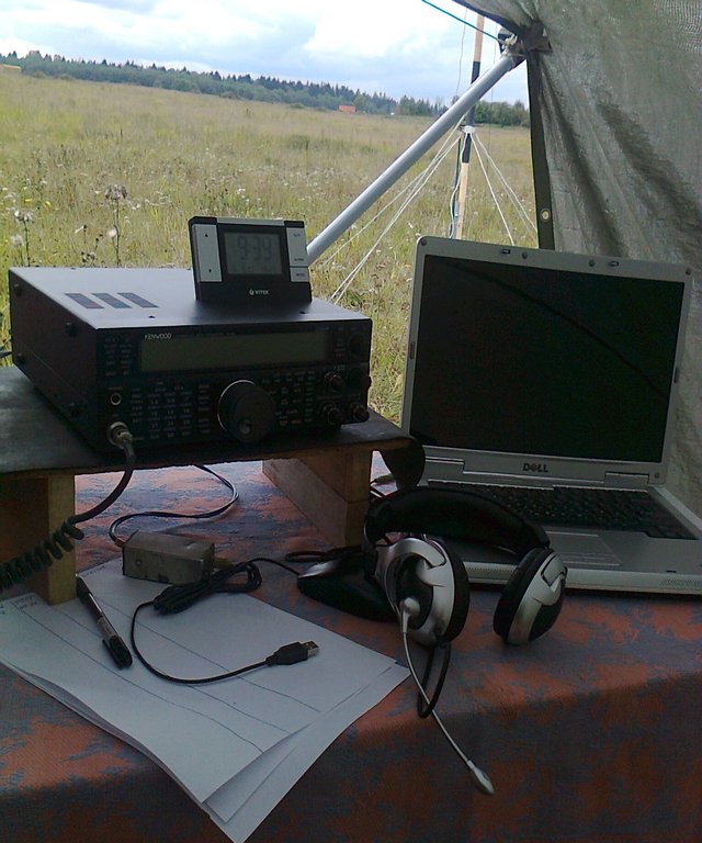 Первый раз участвовал в этом тесте.Набор аппаратуры был таким трансивер ft-857 согласующее-автомат аккумулятор 12 вольт 60 а/ч мачту решил изготовить на месте -нашел в лесу длинное сухое деревце. Утром прибыли на место с UA1F ,сразу стали ставить антенны,я подключился к нашему круглому столу на 80 метрах правда не без помощи RA1AO. Погода была хорошая.Прохождение тоже. Рад был повидать всех и пообщаться со всеми кто приехал на соревнования !