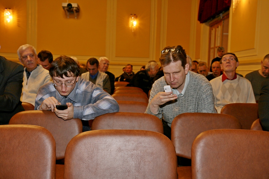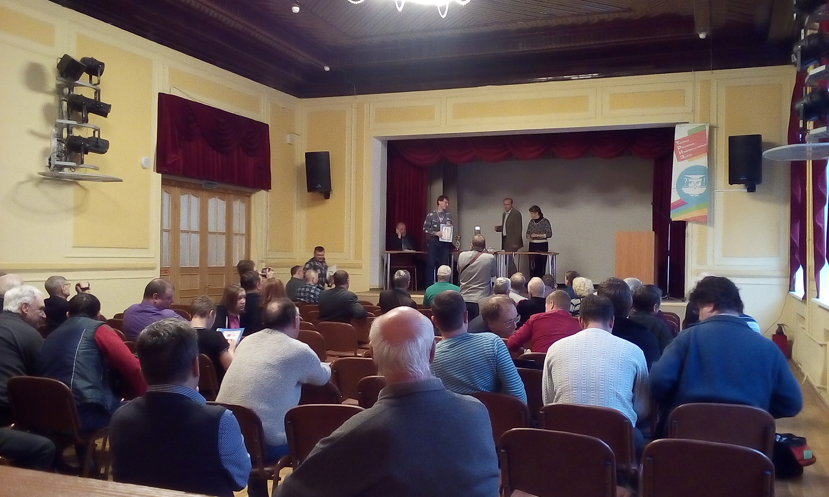 UA1CFX писал(а): Сейчас проходит награждение. Протокольная съёмка собрания будет опубликована. Хочу обратить снимание, насколько печальная фотка. Число присутствующих можно посчитать на пальцах. Большая часть из тех, кто пришел, стояла в очереди в коридоре, чтобы оплатить взносы, а происходящее в зале их мало волновало. Я, если честно, тоже все собрание постоянно убегал из зала, но у меня уважительная причина - шило в ж... И взносы я так и не заплатил.