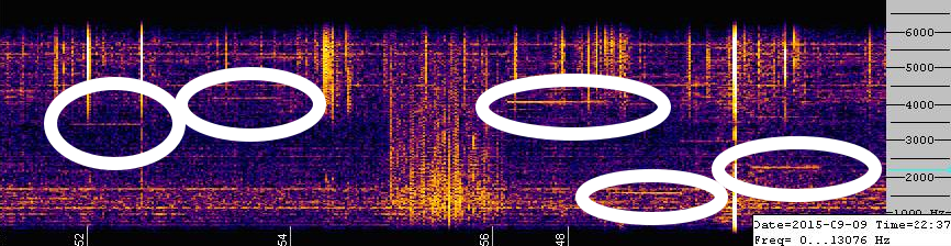 Вчера в ночи (в связи с очередной солнечно-магнитной бурей) принимал сигналы ОНЧ диапазона. Когда проводное радио "замолчало" в районе 3 кГц прекрасно были слышны так называемые "райсеры". Короткие сигналы с тоном на повышение. Но привлекли внимание не они, а интересный мультитоновый сигнал в районе от 0.6 до 2.5 кгц переодически включающийся. (на спектрограмме короткие горизонтальные сигналы в полосе 5 кГц) И слышимый звук картой. Причём программа Spectrum lab обладает мощным инструментом по подавлению промышленного фона 50 и 100 Гц. Приём ведётся непосредственно в городе, как говорится "не вставая с кровати" На крыше в центре Петербурга короткая T-антенна, крыша вся из металла. Кабелем в квартиру. Предназначение и принадлежность этого мультитонового сигнала мне не известна. Возможно это какая-то техногенная система его генерирует. На 10 секунде слышен двойной "Вистлер"