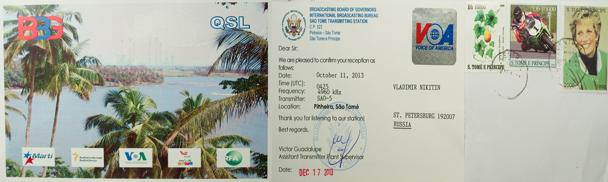 VOA передатчик в Sao Thome, на конверте, как специально, много экзотическо-редких марок. Прям находка для филателистов.