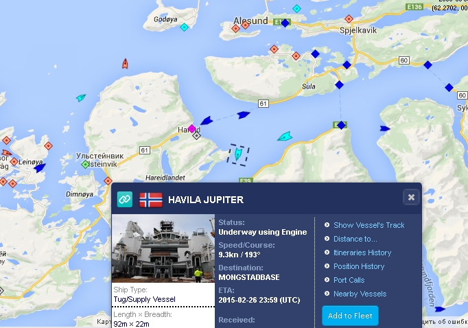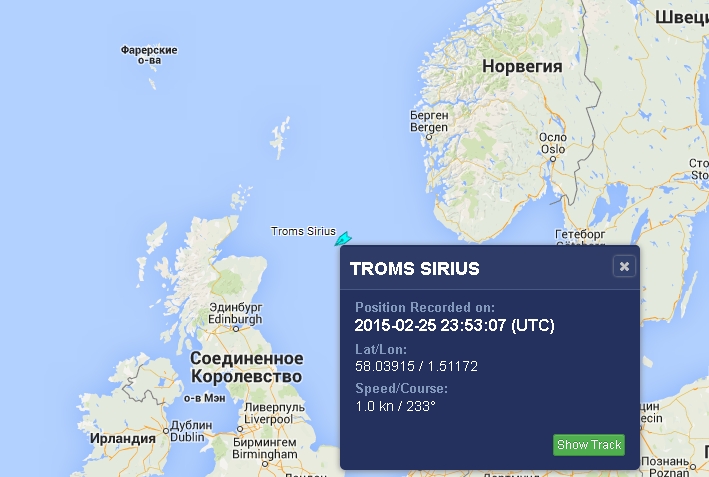 Судно Havila Jupiter в Норвежских фъёрдах, недалеко от замечательного города Алесуна (посчастливилось там побывать) GMDSS DSC Message 01:50 UTC Format: Selective call to an individual station (120) To: 0025705000 Category: Safety From: 2574610000 Telecommand1: Test (118) Telecommand2: No information (126) Frequency1: Unknown Frequency2: Unknown EOS (Ack. RQ)Troms Sirius по пути из Норвегии в Британию в Северном Море Вложение: