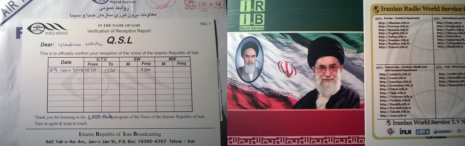 Получил ответ от радиостанции "радио Комминтерна" вещающей на частоте 7200 кгЦ АМ. В виде письма и приложенной фотографии. Рапорт отправлял на e-mail 050353/at/mail.ru Радиостанция находится в деревне недалеко от города Россош, включается и выключается сама, по расписанию. Аппаратура: трансивер ICOM-731 раскачивает усилитель мощности на 2-х ГУ-81 по схеме с общим катодом (анодное напряжение около 3000, экранное 730, смещение -200).