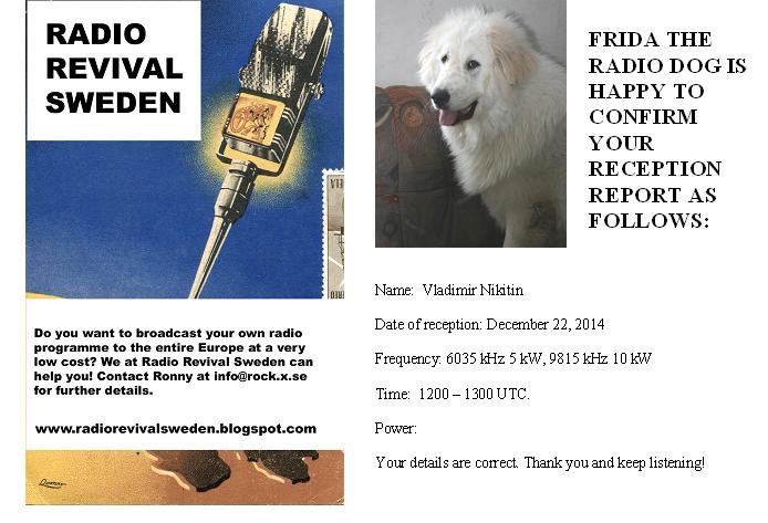 Сегодняшний приём тестовой трансляции Radio Nord Revival из Швеции Всё было обложено 500 киловаттными китайцами, но тем не менее на частоте 6035 приём был, хотя удивительно, но многие слушавшие сегодня эту станцию отмечают именно на этой частоте отсутствие приёма. так или иначе он был и именно на ней, а На остальных указанных в анонсе, по краям стояли 100 kW Китайцы и ни о каком нормальном сигнале речи быть не могло, по крайней мере у меня было именно так. 6035 АМ, 5 kW
