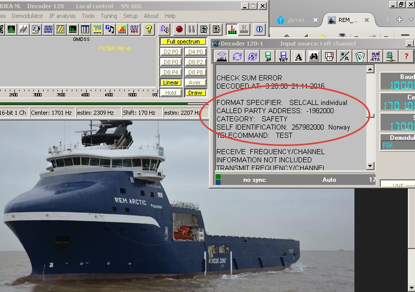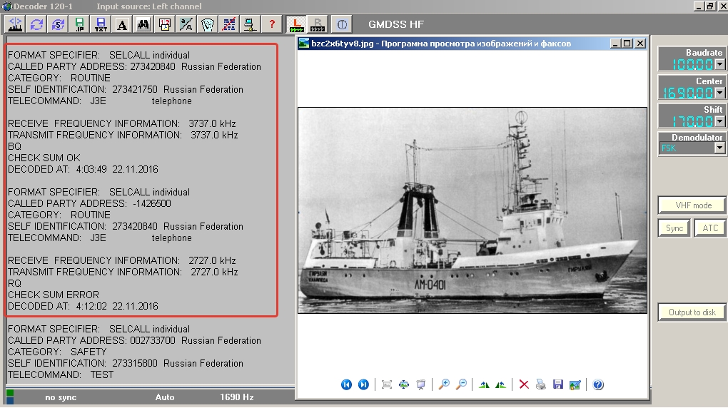 Продолжаю мониторить 2187.5 кГц. Интересные суда попадаются.