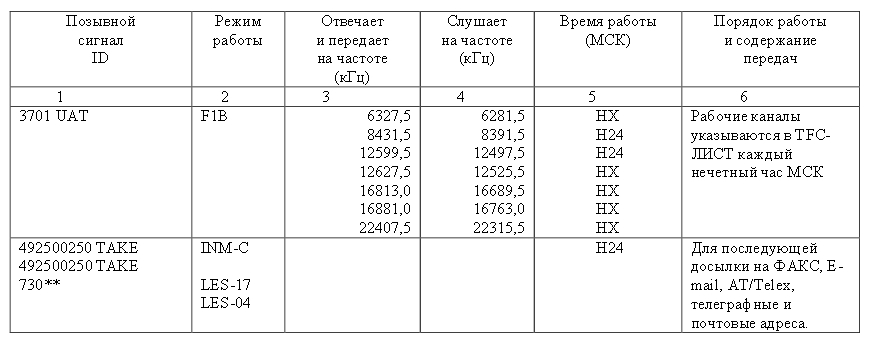 Список радиостанций и времени выхода в эфир в режиме SITOR (актуальность нужно проверять)