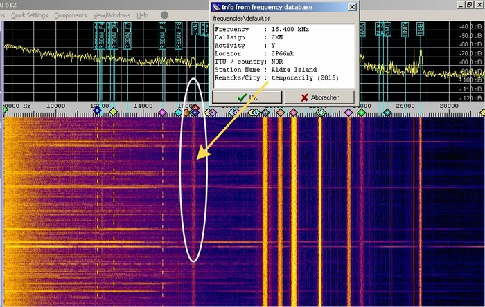 Интересная оказывается история у Норвежской станции JXN работающей (как заявлено в источниках, не регулярно...) на частоте 16.4 кГц Расположена в фъорде Bratland, это бывший передатчик системы "Омега" Теперь работающий на НАТОвские нужды http://www.fofo.no/forsvaretsforum.no/L ... wRLI5D.ipsBratland Омега-передатчик (станция А - 66,420833°N 13,150555°E), расположенный недалеко от Aldra (остров) была единственной европейской Omega станцией. Используется очень необычная антенна, которая состоит из нескольких проводов, натянутых над фьордом между двумя бетонными якорями длинной 3500 метров (11500 футов) Один из блоков был расположен на материковой части Норвегии, другой на острове Aldra. Скрин приёма станции. место приёма: Спб, T-антенна на крыше, LNVA и звук карта