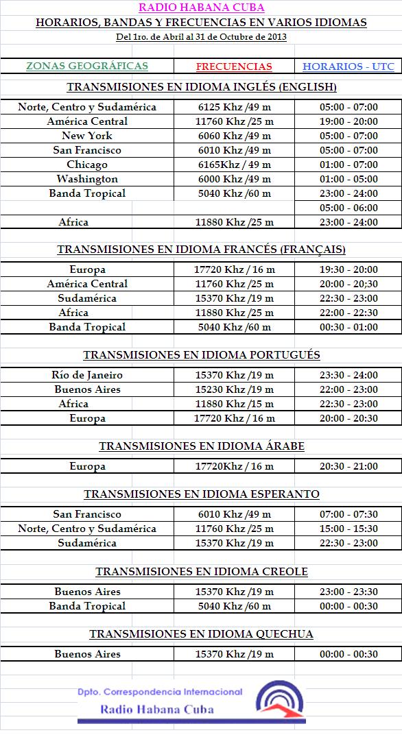 ВРЕМЯ ВЕЩАНИЯ (UTC) ПРОГРАММА ЧАСТОТА МЕСТО ПРИЕМА