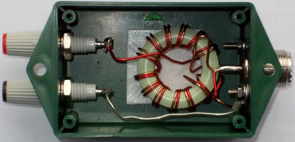 Есть такой симметрирующий трансформатор LDG RBA 4:1, так вот попадаются варианты, где трансформатор распаян неверно. На фото два варианта: один вариант это действительно симметрирующий трансформатор, а другой нет. Отличить "настоящий" трансформатор очень просто, на фото видно, что красная клемма и один вывод припаяны к центральному контакту коаксиального разъема, а "скрутка", место соединения двух обмоток, к фланцу разъема. В ненастоящем трансформаторе, все с точностью до наоборот, к центральному контакту припаяна скрутка и такой трансформатор симметрией не обладает. Будьте бдительны при выборе данного устройства.