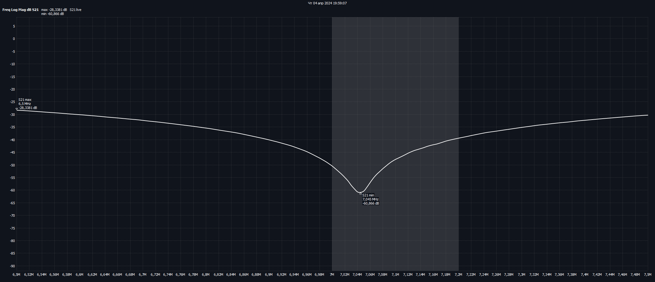 Я же график выложил выше, там подавление от 40 до 61 дБ. У Вас есть сомнение в правильности измерений? Сейчас он стоит на GP на 40 метров.