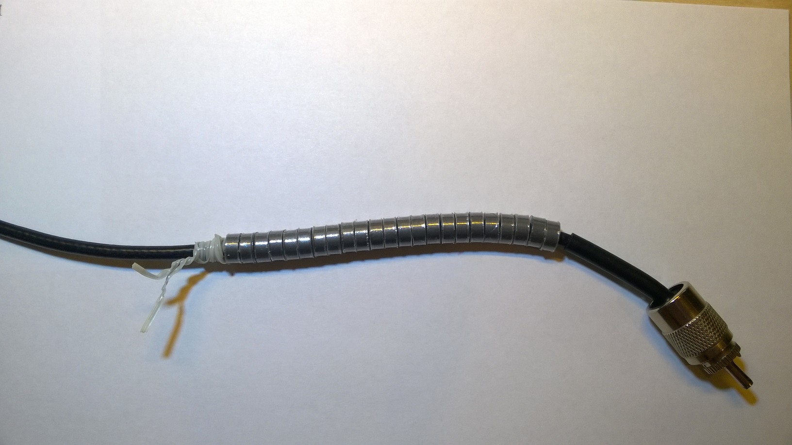 Простой запорный дроссель для RG58 с диаметром не более 6мм, получается из колец одетых прямо на кабель. На фото один из моих кабелей с древними кольцами M2000НМ. На другом фото кольца с проницаемостью 10000, если их одеть на кабель 10 штук, то получится отличный дроссель с индуктивностью 400 мкГ. При этом кабель не изгибается, не удлиняется.