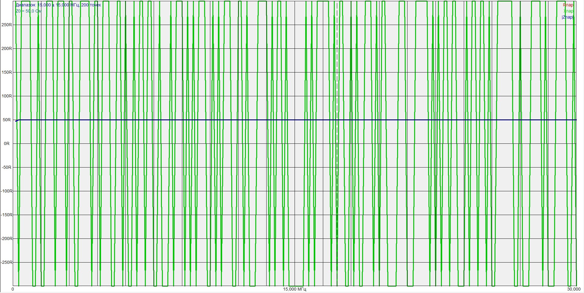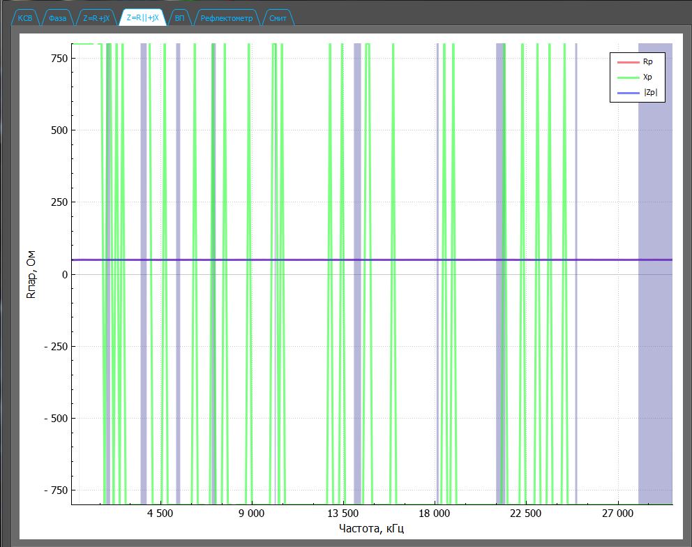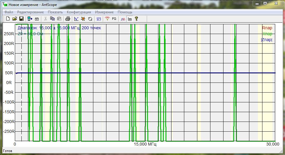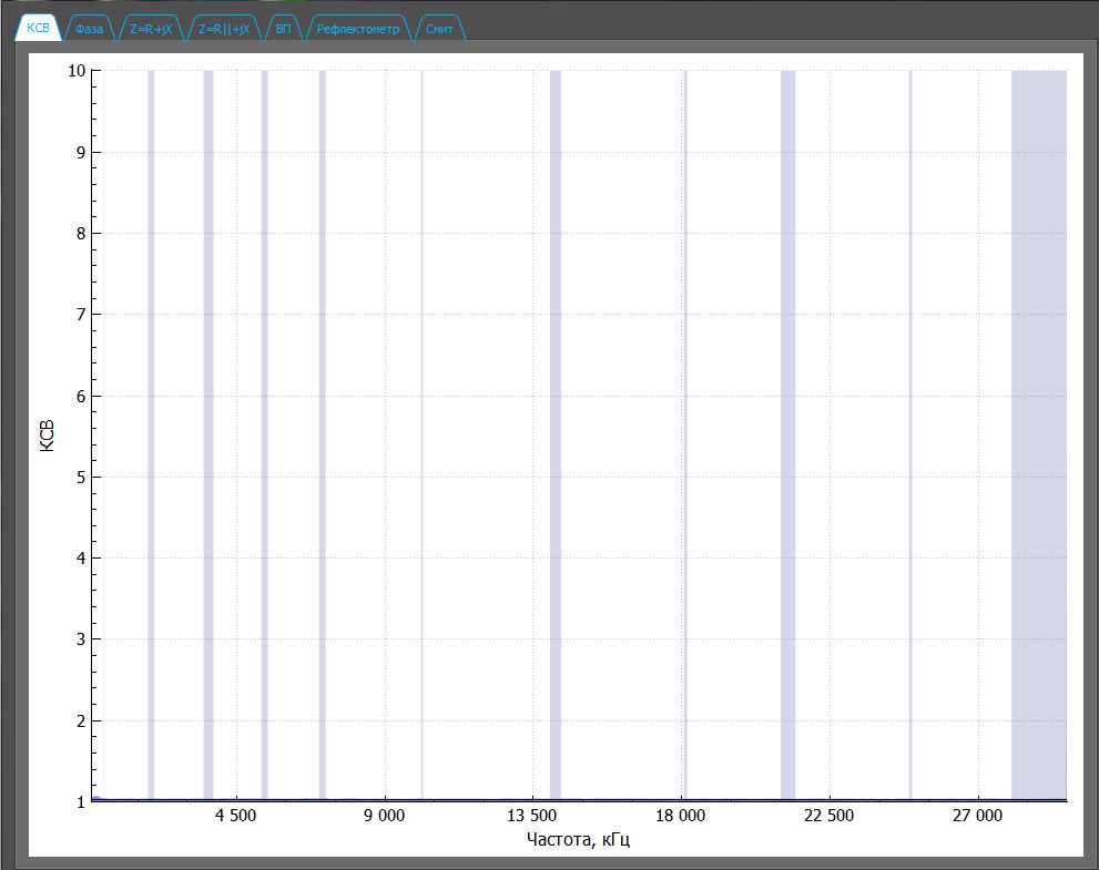 UR7HJR писал(а): Вот снял графики первым AntScope, может чем поможет. В "о программе" значится это: AntScope 4.2.85 (Oct 3 216) Нагрузка 50 ом из комплекта прибора. Полоса от 0 до 30000 , число точек сканирования - 200. EU1KY не рекомендует использовать AntScope V2 вот тут: https://groups.io/g/Analyzer-EU1KY/message/151Да и DH1AKF на cqham.ru, по-моему в мае, писал, что тестирует свой мод исключительно на V1. Поставил ту же версию AntScope и те же параметры сканирования, что и у вас, на калибровочном 50Омном резисторе из комплекта получил следующее: Вложение: