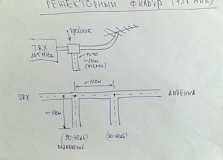 Есть еще один способ, если делать фильтры не хочется, но в наличии есть диплексер на 145-435 МГц, его можно подключить в обратную сторону и на общий вход подключить трансивер, а на выход 145 МГц антенну и на выход 435 МГц нагрузку, получится фильтр с рассеиванием гармоник.